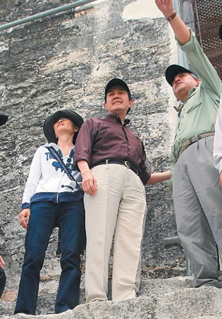 中新網(wǎng)6月1日電 據(jù)臺灣《聯(lián)合報》報道,馬英九訪問中美洲已經(jīng)六天。馬英九夫婦被安排參觀危地馬拉提卡爾公園的馬雅遺址,輕松爬上數(shù)百階的神廟,當團員問馬英九“累不累?”沒想到一旁的“酷酷嫂”周美青插話說“他什么都沒做,怎么會累!”