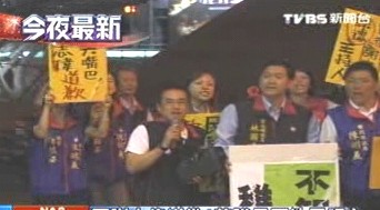 藍(lán)營(yíng)議員高喊:“謝志偉道歉!民視負(fù)責(zé)!謝志偉道歉!”藍(lán)營(yíng)議員算準(zhǔn)謝志偉上班時(shí)間,帶隊(duì)到民視大門(mén)口抗議,但兩排警力層層擋住大門(mén)口,臺(tái)北縣議員陳明義,腳進(jìn)不去,干脆用手丟雞蛋泄憤。