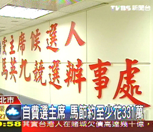 馬英九這回競(jìng)選黨主席全花私人存款,包括付給黨中央的作業(yè)費(fèi)200萬(wàn),70多坪辦公室約40天的租金17萬(wàn)元,競(jìng)選活動(dòng)14天,下鄉(xiāng)的油料費(fèi)約84萬(wàn),文宣以及團(tuán)隊(duì)下鄉(xiāng)的交通費(fèi)、雜支,這回競(jìng)選最少331萬(wàn)元。