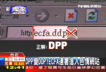 眼尖的臺灣網(wǎng)友發(fā)現(xiàn),民進(jìn)黨英文縮寫DPP變成了DDP,民進(jìn)黨得知后也趕緊替ECFA網(wǎng)站正名,也有些尷尬。
