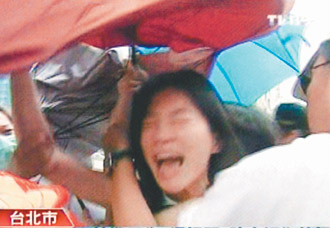 警方見(jiàn)狀上前攔阻陳幸妤,護(hù)衛(wèi)隊(duì)及護(hù)士趨前拉住她,混亂中護(hù)衛(wèi)隊(duì)的雨傘骨架刺中多名記者的眼睛與臉部,還打落值勤警察的警帽。