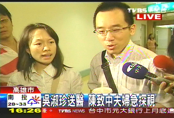 而原本在民進(jìn)黨高雄市黨部協(xié)助提供法律咨詢的陳致中,在聽聞母親因?yàn)檠獕哼^低緊急送醫(yī)后,也隨即趕往醫(yī)院探視。