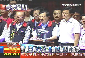 不知道是因?yàn)辄h內(nèi)選舉沒對手,還是替明年新北市選舉提前布局,馬英九的炮口掃向民進(jìn)黨最熱門的人。他說:“我當(dāng)臺北市長后,蘇(貞昌)縣長跟我大概合作最成功的,是在臺北各個(gè)橋頭聯(lián)合取締酒后駕車。”
