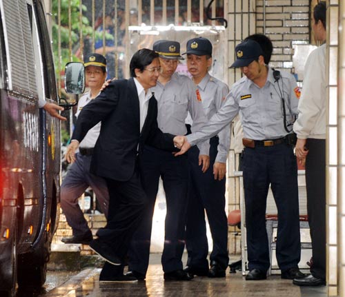 即使外頭下著毛毛細(xì)雨,似乎一點(diǎn)都不影響陳水扁的心情,燦爛的笑容掛在臉上抵擋壞天氣,步伐跨得太大差點(diǎn)跌倒,一旁的法警趕緊護(hù)著他,讓他保持平衡,開開心心迎戰(zhàn)在高院的第一次正式的準(zhǔn)備庭。