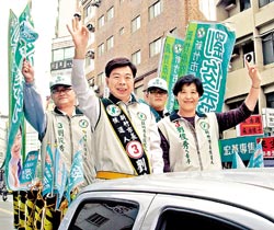 國(guó)民黨桃園縣長(zhǎng)候選人吳志揚(yáng),昨日把重心放在桃園、蘆竹等地,盡管飄著細(xì)雨,仍不減支持者的熱情,在力行市場(chǎng)內(nèi)一一與攤商和菜籃族握手拜票,又與“立委”周守訓(xùn)、多位國(guó)民黨中常委,桃園市長(zhǎng)候選人蘇家明、多位縣議員候選人,騎乘自行車向選民拜票。