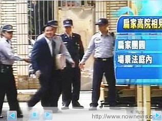 陳水扁走下囚車,臉上帶著笑容,還揮手向媒體記者以及支持群眾示意,看得出來心情還不錯。他刻意梳理頭發(fā),因為一整天的庭訊,他將有機(jī)會在臺北看守所以外的場合見到久違的家人,包括兒子陳致中、兒媳黃睿靚,還有妻舅吳景茂夫婦以及太太吳淑珍,扁家人又再次于法庭團(tuán)聚。