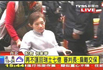 據(jù)臺灣TVBS報道,6月11日扁案就要二審宣判,今天再度開庭時傳喚陳水扁、吳淑珍、陳致中、黃睿靚等4人。法庭上,審判長當(dāng)著扁家4個人的面表示,要他們盡速將瑞士4個賬戶,將近7億新臺幣的錢匯回臺灣,否則月底(4月23日)陳水扁即將羈押期滿,屆時想要交保,重獲自由機(jī)率等于是零。