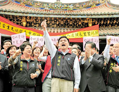 大批民眾拿著“臺北要‘郝’,不要‘蘇’”的標(biāo)語,力挺郝龍斌,“凍蒜(當(dāng)選)”聲不絕于耳,緊接著郝龍斌用閩南話演說,“我要向神明報告,過去三年誠心和認真為臺北市打拼,祈求神明保佑,讓我繼續(xù)為市民服務(wù)!