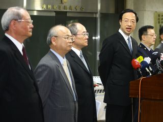 據(jù)報(bào)道,“內(nèi)政部長(zhǎng)”江宜樺、“檢察總長(zhǎng)”黃世銘、“高等法院檢察署檢察長(zhǎng)”顏大和、“法務(wù)部調(diào)查局長(zhǎng)”吳瑛、“國(guó)防部憲兵司令部司令”李翔宙等人,10日在刑事局舉行聯(lián)合記者會(huì),說明現(xiàn)階段強(qiáng)化治安措施、掃黑行動(dòng)的“霹靂專案”。