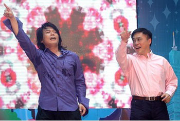 中新網(wǎng)5月19日電 據(jù)“中央社”報(bào)道,臺(tái)北市將舉辦花卉博覽會(huì),藝人伍佰19日身披紙制環(huán)保“太空戰(zhàn)警裝”化身“i花博”環(huán)保親善大使,與臺(tái)北市長(zhǎng)郝龍斌大跳招牌花朵舞。伍佰高唱“你是我的花博”,強(qiáng)調(diào)愛地球、做環(huán)保,要“不眠也不休”。