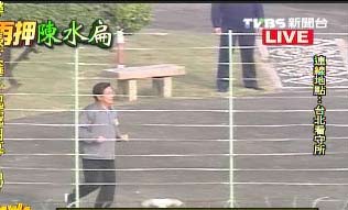 中新網(wǎng)1月15日電 據(jù)臺(tái)灣TVBS報(bào)道,今天是陳水扁遭到收押的第17天,昨天才傳出,阿扁抱怨進(jìn)入看守所多日僅獲得4次的放風(fēng)機(jī)會(huì),不過,就在今天下午電子媒體首次捕捉到陳水扁的放風(fēng)畫面。
