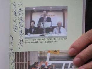 據(jù)“今日新聞”報(bào)道,鄭文龍律見完陳水扁,從公文包拿出《臺(tái)灣的十字架》,翻開第一頁,上頭寫著“文龍道長惠存,臺(tái)灣甘諾!毕骂^再簽上“陳水扁”三個(gè)字,注明時(shí)間是2009年1月20日土所。