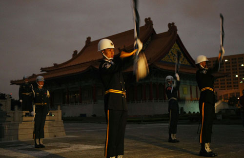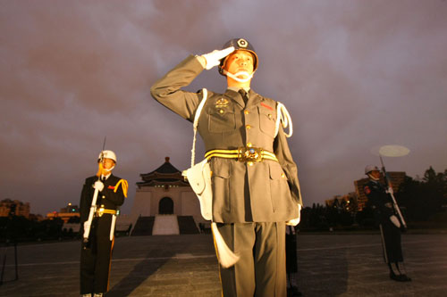 據(jù)“中央社”報(bào)道,與以前不同,臺(tái)軍三軍儀仗隊(duì)特別策劃新的交接方式,由單一軍種改為陸?杖妰x隊(duì)輪流執(zhí)勤,參觀的民眾每天可以看見不同的制服和表演風(fēng)格。