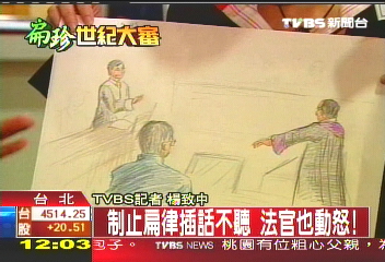 TVBS記者口述:“關于陳水扁的庭期里面,這一次應該是最火爆的一次,當時檢察官他是站起來,他的雙手指著陳水扁,昨天的身體狀況我們也發(fā)現(xiàn)了,確實他是不太好,但是為什么律師要發(fā)言那么久,這個時候律師鄭文龍把手舉起來一直搖手說,沒有啊、沒有啊!