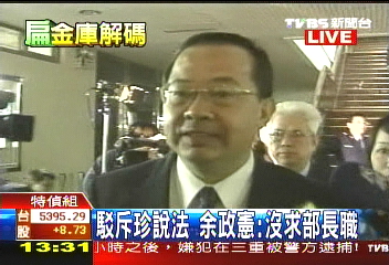 據(jù)了解,余政憲在庭上說,在25日庭訊的隔天,也就是26日,當時任職“行政院長”的游錫堃親自打電話向余政憲說明整個事件的來龍去脈。