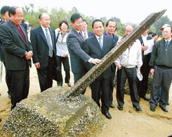 中新網3月30日電 金門與廈門預定8月共同舉辦“橫渡金廈海上長泳”活動,在臺訪問的廈門市長劉賜貴29日由金門縣長李炷烽陪同至小金門雙口海岸實地勘查。針對縣府基于確保選手安全,將協(xié)調軍方拆除1000米反登陸“軌條砦”,他強調這意味著將兩岸過去敵對、對峙的軍事設施也清除掉,是一件“好事!”