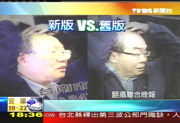 據(jù)臺(tái)灣TVBS報(bào)道,黃永田又有新名片,乍看好像是原本那張掀掉邱毅發(fā)片的新聞?wù)掌,不過仔細(xì)看,邱毅變了一張臉,變成一位老先生,比對(duì)一下新舊版本,明顯發(fā)現(xiàn)兩張臉孔大不同。
