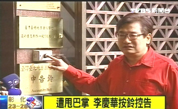 中新網(wǎng)4月22日電 據(jù)臺(tái)灣TVBS報(bào)道,國民黨“立委”李慶華今日在“立法院”里被民進(jìn)黨“立委”邱議瑩甩了一巴掌,李慶華下午2點(diǎn)多到法院按鈴控告邱議瑩公然侮辱。