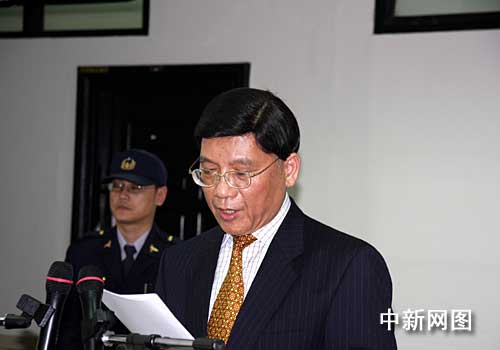 一月七日中午,臺(tái)灣高等法院駁回陳水扁對(duì)二度遭到羈押的抗告,高院認(rèn)為陳水扁委任律師所提抗告沒有理由,因此予以駁回。全案就羈押部分不得再提抗告。圖為臺(tái)灣高等法院發(fā)言人溫耀源在記者會(huì)上宣布裁定結(jié)果并解釋裁定書。 (圖文/中新社記者 陳立宇)