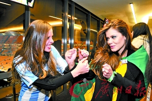 不過,記者們千萬不要以為世界小姐的到來是為了“招待”老記們。主辦方只是希望利用媒體和世界小姐,對世界杯的1/4決賽進行預熱宣傳。昨天晚會的高潮就是邀請8名世界小姐分別按照各自球隊目前的對陣形勢,進行點球大決戰(zhàn)。結(jié)果阿根廷小姐斯科爾科娃技壓群芳,奪得了冠軍,大會當場向她頒發(fā)了一尊仿造的大力神杯。