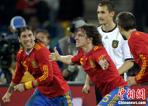 中新網(wǎng)7月8日電 今天凌晨2:30,南非世界杯第二場半決賽在德班球場拉開戰(zhàn)幕,由德國隊迎戰(zhàn)西班牙。憑借普約爾在第73分鐘的頭球破門,西班牙隊1-0力克德國,與荷蘭隊會師決賽。