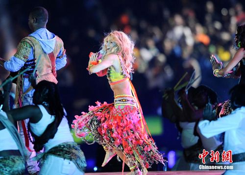 中新網(wǎng)7月12日電 北京時間12日凌晨,世界杯閉幕表演在南非約翰內(nèi)斯堡的足球城體育場舉行。出生于哥倫比亞的拉丁天后夏奇拉在閉幕式上唱響了本屆世界杯的主題歌《Waka Waka (This Time for Africa)》(《非洲時刻》),點(diǎn)燃了現(xiàn)場的激情。