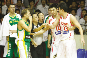 雖然僅僅是一場(chǎng)熱身賽,但場(chǎng)上的火藥味卻非常濃烈,比賽中雙方險(xiǎn)些釀成大規(guī)模沖突。第二節(jié)還剩2分鐘,蘇偉在籃下和立陶宛隊(duì)的球員發(fā)生了激烈的肢體對(duì)抗,由于對(duì)方有明顯的兇狠犯規(guī)動(dòng)作,蘇偉憤怒地和對(duì)手沖過(guò)去理論,好在隨后被隊(duì)友拉開(kāi),才及時(shí)避免了事件的進(jìn)一步擴(kuò)大。