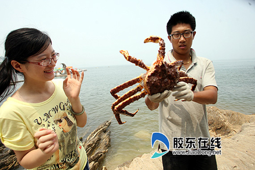 “一只螃蟹6斤重,展開之后一米長,和章魚哥一樣,擅長預測……!必撠熆答B(yǎng)帝王蟹的煙臺市民小魏這樣告訴記者。7月13日,本網(wǎng)以《好大一只帝王蟹 重3公斤價值1700元》為題報道了市民矯先生從俄羅斯購進的大螃蟹,一時間吸引了眾多看稀奇的游客和市民。相隔不到一個星期,其中一只名叫“霸王”的超大螃蟹爆出猛料,因為它要向世界杯明星保羅章魚哥發(fā)出挑戰(zhàn),預測所有魯能比賽。