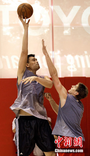 中新網(wǎng)8月25日電 北京時(shí)間今日據(jù)美聯(lián)社報(bào)道,美國(guó)當(dāng)?shù)貢r(shí)間周二,姚明在火箭隊(duì)主場(chǎng)豐田中心進(jìn)行了公開恢復(fù)性訓(xùn)練。