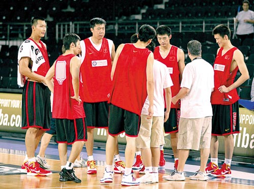 一個(gè)半小時(shí)的高強(qiáng)度訓(xùn)練,目標(biāo)還是瞄準(zhǔn)希臘隊(duì)。鄧華德用大部分時(shí)間來(lái)演練破全場(chǎng)緊逼戰(zhàn)術(shù)。他不可能不知道,四年前中國(guó)隊(duì)與希臘那場(chǎng)1/8決賽,上半場(chǎng)中國(guó)隊(duì)一度領(lǐng)先12分,卻在第三節(jié)被對(duì)手全身緊逼擊潰,那時(shí)在場(chǎng)邊無(wú)奈的是尤納斯。北京時(shí)間今晚,鄧華德要面對(duì)老尤率領(lǐng)的世界一等一的防守高手,還尤其擅長(zhǎng)全場(chǎng)緊逼。