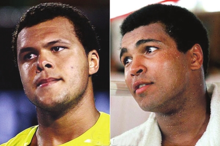 自從特松加一炮走紅時,他就被外國媒體送上了一個綽號——法國阿里,這位高大的法國小伙子的確和拳王阿里非常相似,不論是他虎背熊腰的身材還是他憨厚的表情,特松加都酷似拳王。而更讓人驚訝的是,略帶點野性的特松加喜歡“吞網(wǎng)球”,他在球場上靈活的步伐似乎也有阿里蝴蝶舞步的影子。