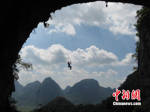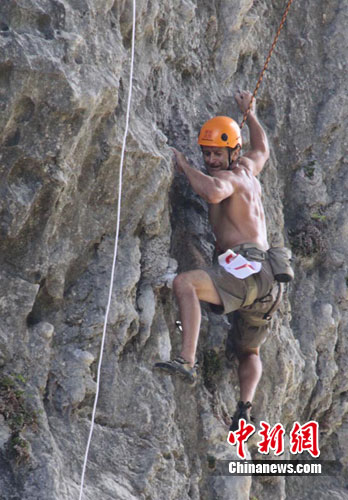 中新網(wǎng)河池9月18日電(陸旺)9月18日,廣西羅城國(guó)際攀巖賽在中國(guó)唯一的仫佬自治縣——廣西河池市羅城仫佬族自治縣的月亮山開賽。被視為2010羅城攀巖旅游節(jié)的重頭戲,中外80名攀巖愛好者以及部分觀眾上午8點(diǎn)鐘便聚集在形狀宛若一輪明月的月亮山下,相互“攀比”、切磋攀巖技術(shù)。