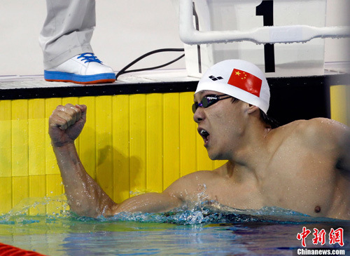 中新網(wǎng)廣州11月14日電 (記者 沈嘉)14日晚,目標(biāo)直指2012年倫敦奧運(yùn)會的“日本蛙王”北島康介在廣州亞運(yùn)會的泳池中栽了跟頭。在男子50米蛙泳項(xiàng)目中戰(zhàn)勝他的是中國23歲的游泳選手謝智。