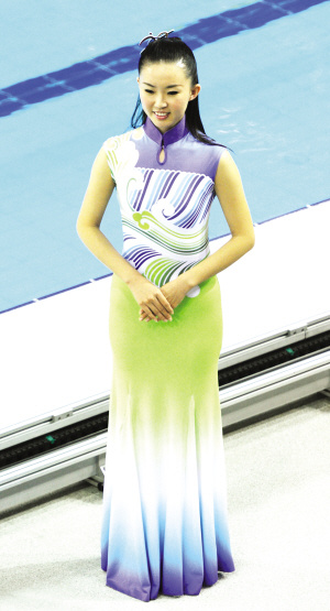 同其他大型活動(dòng)的禮服不同,“行云流水”的面料有了突破——用泳衣和體操服那樣的彈性面料,代替了傳統(tǒng)的綢緞面料。與此同時(shí),這樣的面料,不需要太多的剪裁,有了彈性,各種體型的禮儀小姐穿上去都合適。不過(guò)彈性面料也有不少,有些面料容易褪色,有些面料做出來(lái)顏色有偏差。最終,“行云流水”的面料選為滌綸。