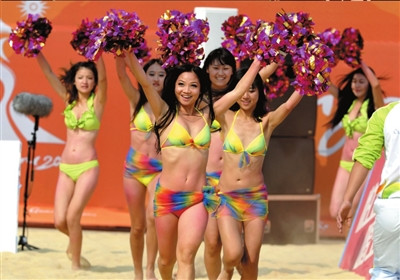 昨天亞運會沙灘排球預賽正式開賽,現(xiàn)場文字記者寥寥,攝影記者卻非常多,原來,他們都是沖著沙排寶貝來的。