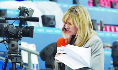 這名美女主持人名叫卡洛琳·布朗,這是她第六次采訪劉翔。“雅典奧運(yùn)會(huì)、大阪世錦賽等等,我之前見過他五次,北京奧運(yùn)會(huì)我親眼看到他受傷退賽了,感覺非常傷心!笨辶照f,她希望這一次劉翔能夠重新飛翔拿到冠軍。在攀談中,卡洛琳得知記者來自中國(guó),她饒有興趣地打聽劉翔的近況。“我看報(bào)道說他的傷尚未痊愈,是這樣嗎?你能告訴我劉翔的一些情況嗎?”在明白劉翔此次是為亞運(yùn)三冠王而來,卡洛琳顯得非常興奮,她說:“那我們一會(huì)兒期待他吧!” 木 易