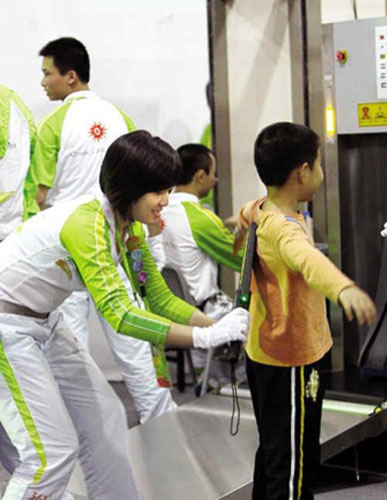 在體育場館安檢口工作的志愿者們,需要對每一位觀眾進(jìn)行前、后身從頭到腳的掃描,這意味著每檢查一個(gè)觀眾就要下蹲兩次。詹婷婷是廣東警官學(xué)院即將畢業(yè)的大三學(xué)生,作為亞運(yùn)志愿者,在廣州體育館安檢口的崗位上,她不斷地做著深蹲動作,最多的一天超過2600次。