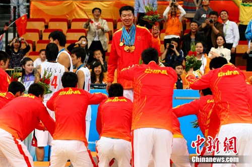 中新網(wǎng)廣州11月26日電(記者 宗晨亮 盧巖)26日,依靠老將王治郅的神勇發(fā)揮,中國(guó)男籃最后關(guān)頭頂住韓國(guó)隊(duì)的反擊,以77比71擊敗對(duì)手,奪得廣州亞運(yùn)會(huì)男籃金牌。