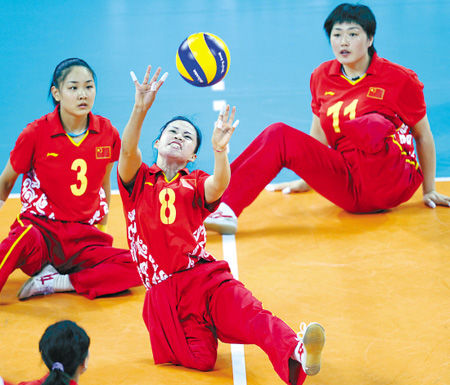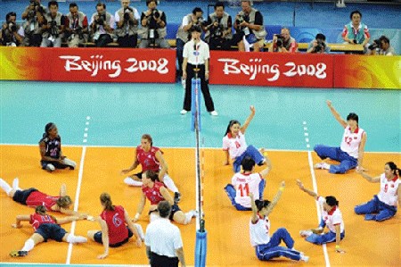 殘奧會坐式排球比賽方式與奧運會排球比賽方式基本相同,但有部分特殊規(guī)定:例如坐式排球的比賽場地小于6人排球比賽場地;在比賽過程中運動員需坐在地上進行比賽,其臀部必須保持與地面接觸,不允許站立和行走;在沒有妨礙對方完成技術(shù)動作的情況下,允許隊員的手和腳越過中線;防守隊員可以直接攔截發(fā)球等。(來源: 亞殘運會官方網(wǎng)站)