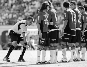 在足球比賽中,雙方隊員都會為直接任意球的罰球點與排人墻的位置發(fā)生爭執(zhí),主裁判也一直為確定人墻和足球保持9.15米的距離而頭疼,F(xiàn)在,阿根廷體育記者帕布羅·席爾瓦發(fā)明的神奇噴霧劑卻有望改變這一局面。在近日舉行的阿根廷秋季甲級聯(lián)賽中,主裁判全部裝備了一種特殊白色噴霧劑,用于幫助確認罰球點和人墻的距離,有效減少了球員的爭議。