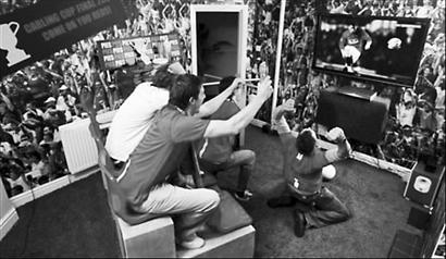 據(jù)《貝爾法斯特電信報》報道,一生都支持曼聯(lián)的26歲英國小伙子菲爾因故沒有能得到曼聯(lián)對熱刺的決賽門票,于是他開始著手把溫布利“搬”回自己位于曼徹斯特的家。菲爾首先將書房的地板鋪上人工草皮,然后在上面放置了一個兩層的小看臺,在看臺上菲爾復制了球場的座椅、靠背,甚至座椅加熱器。為了達到更加逼真的效果,他甚至把房間門也變成了和球場一樣的十字轉門。