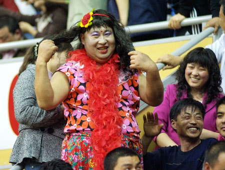 “如花”顯然是有備而來,他戴著花圍巾、穿著花衣裳,賽前先是戴著一個(gè)黑色的發(fā)套現(xiàn)身。比賽中他還到洗手間重新打扮,換上紅藍(lán)相間的發(fā)套再回到賽場。據(jù)當(dāng)?shù)孛襟w記者介紹,這個(gè)球迷是江蘇舜天隊(duì)的鐵桿球迷,大家都稱他“胖哥”。在足球場上,這個(gè)球迷也是如此打扮為江蘇舜天隊(duì)加油,看到舜天本周沒有比賽,他就到籃球賽場上來“湊熱鬧”了。(記者潘天舒)