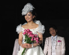 中新網(wǎng)2月18日電 據(jù)共同社報道,北京奧運羽毛球女雙“潮田/小椋”組合中的一員、日本羽毛球名將潮田玲子17日在東京舉行的著名設計師桂由美婚紗秀上擔任模特,首次走上了T型臺。