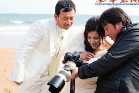 為了排遣等待天晴的無聊時(shí)間,張娟娟聽取了店里工作人員的建議,趁機(jī)挑選婚禮服。雖然口口聲聲地說被前一天的拍攝累壞了,但是一看到為自己準(zhǔn)備好的極品婚紗,張娟娟又興奮地進(jìn)入了試衣間,而她的老公薛海峰照舊老老實(shí)實(shí)坐在沙發(fā)上等待!疤膳铝耍 背弥鴱埦昃耆Q另一套衣服,被老婆的N套華麗裙裝轟炸得暈頭轉(zhuǎn)向的薛海峰悄悄地對(duì)記者說:“我已經(jīng)審美疲勞了。”