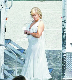 在第二天的下午3點(diǎn)男女兩方都出現(xiàn)在巴塞爾民政廳的大門(mén)口,在明媚的陽(yáng)光中,兩人手牽著手走向了他們婚姻的起點(diǎn)。當(dāng)他們從廳內(nèi)走出時(shí),花瓣飄落,淚如雨下。新娘在一身純白碎花的禮服里顯得嬌媚動(dòng)人,而這件由著名設(shè)計(jì)師奧斯卡·德拉·雷塔定制的禮服剛剛過(guò)膝,恰好掩蓋了米爾卡由于懷孕而隆起的小腹。
