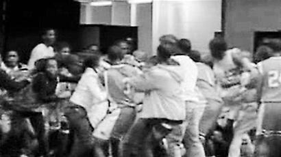 在NBA賽場(chǎng)上,我們?cè)?jīng)見識(shí)過臭名昭著的奧本山宮殿斗毆事件。而在美國(guó)當(dāng)?shù)貢r(shí)間2月16日,在阿拉巴馬州立大學(xué)內(nèi)舉行的一場(chǎng)高中生籃球比賽里,幾十名高中學(xué)生因?yàn)橐淮涡⌒〉姆敢?guī)而扭打在一起。值得一提的是,場(chǎng)邊可愛的美女拉拉隊(duì)員也沖上場(chǎng)來,上演一出男女互毆的鬧劇。