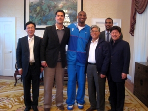 科比感謝張總領(lǐng)事邀請(qǐng)他來官邸作客,并愉快地憶及去年8月赴京參加北京奧運(yùn)會(huì)的情景?票缺硎,親身參加北京奧運(yùn)會(huì)是他巨大的榮耀。在華期間,他初步領(lǐng)略到了絢麗多彩的中國(guó)文化和快速發(fā)展的中國(guó)社會(huì),充分感受到了中國(guó)人民的友好情誼。他熱愛中國(guó),希望早日重訪中國(guó),進(jìn)一步加深對(duì)中國(guó)的了解。同時(shí),愿發(fā)揮自身影響力,為促進(jìn)美中兩國(guó)青年間的相互溝通與交流,特別是為兩國(guó)弱勢(shì)兒童的福祉做些實(shí)事。