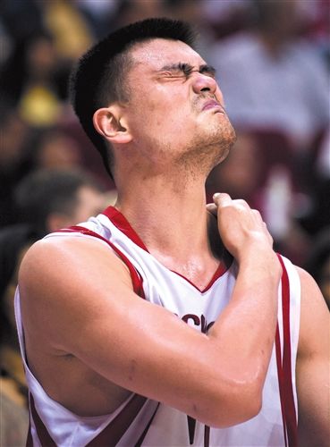 2007年,因?yàn)榧鐐,姚明缺席了男籃四國(guó)賽。2008年因?yàn)楣钦酆图鐐,姚明缺席了中?guó)男籃在奧運(yùn)會(huì)之前的絕大部分熱身賽。2009年,肩膀再度出現(xiàn)問(wèn)題,姚明會(huì)不會(huì)缺席亞錦賽?