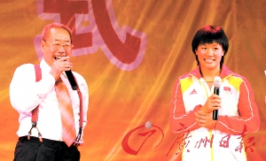 何賽飛的話顯然啟發(fā)了楊秀麗,在記者的“慫恿”下,她向協(xié)辦此次畫(huà)展的中體明星隊(duì)領(lǐng)隊(duì)王奇說(shuō)了自己的想法。王奇立即將楊秀麗送上了臺(tái)并和主持活動(dòng)的崔永元偷偷交代!岸祭蠋,您請(qǐng)留步!贝抻涝獙l(fā)言完畢的都本基留在臺(tái)上,“奧運(yùn)冠軍楊秀麗希望能拜您為師學(xué)習(xí)書(shū)法!边@是個(gè)意外安排,都本基大師顯得非常激動(dòng)。“這個(gè)徒弟我收下了!”老人的干脆讓楊秀麗有些驚訝,她深深地向老師鞠了一躬,頭上的汗水晶瑩可見(jiàn)!拔业膵屟剑o張死了,從沒(méi)這么緊張過(guò)。”終于如愿的楊秀麗抹了一把汗說(shuō),“這下我回去更要好好練字了!