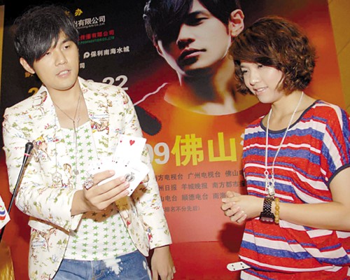 昨日下午,周杰倫以“雪碧”品牌代言人身份,來到廣州新長隆酒店舉行千人大型歌迷見面會,剛剛拍完電影《刺陵》的周杰倫似乎是在沙漠地帶待得太久,不僅主動要求記者提些“奇怪的問題”,而且有問必答,還在現(xiàn)場分別為歌迷與記者連玩了數(shù)場撲克魔術(shù)。他十分肯定地承認自己玩魔術(shù)的確有“喧賓奪主”的嫌疑,但仍自夸“魔術(shù)玩得太好,我還想明年準備做一場大型魔術(shù)主題演唱會”。